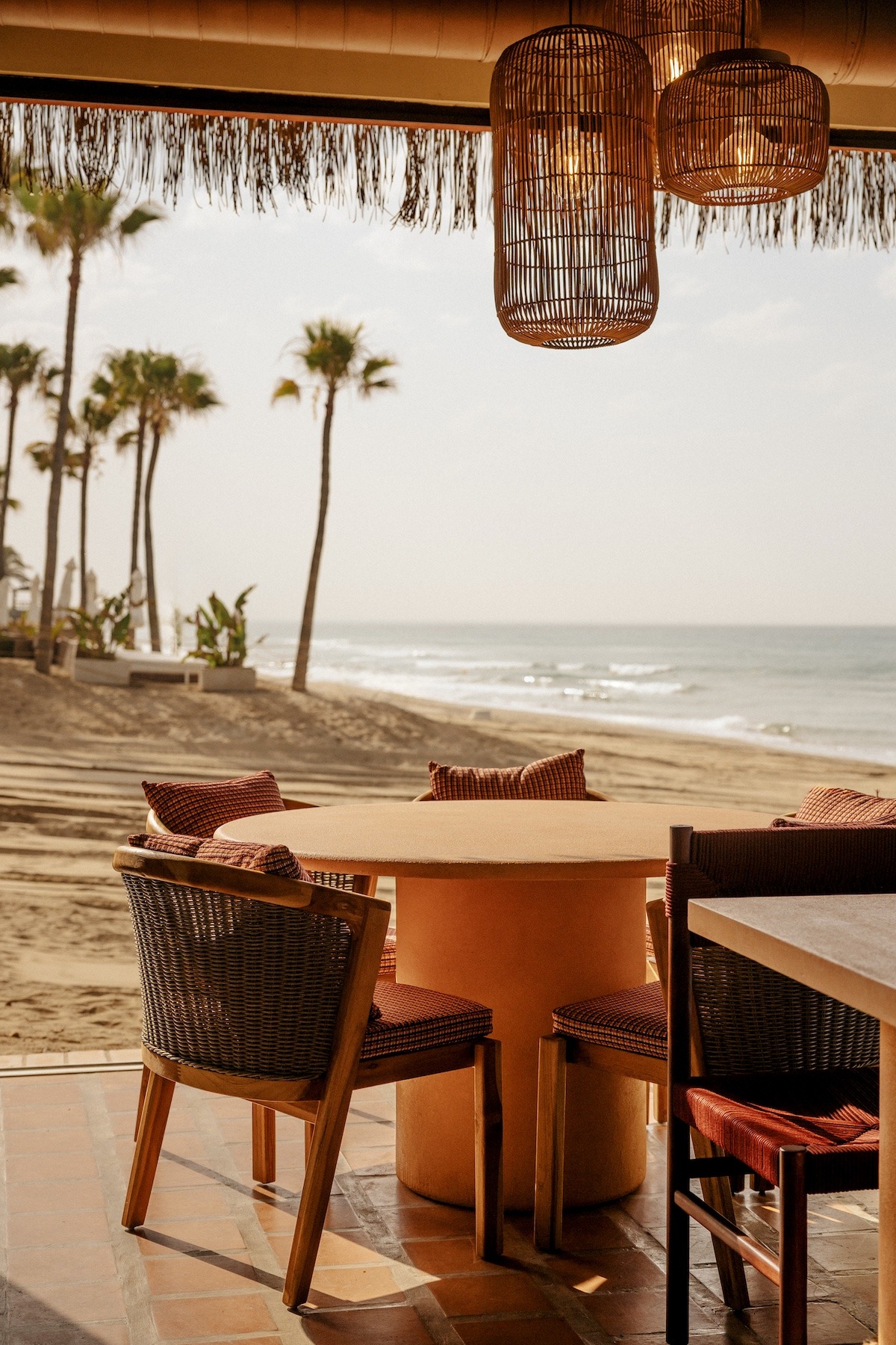 Este beach club en Marbella redefine el lujo mediterráneo a través de un diseño orgánico con toques retro, donde la arquitectura se integra de manera natural con su entorno costero. Materiales nobles como la madera, la cerámica artesanal y el estuco crean texturas que van de lo suave a lo rústico, siempre en armonía con el paisaje.