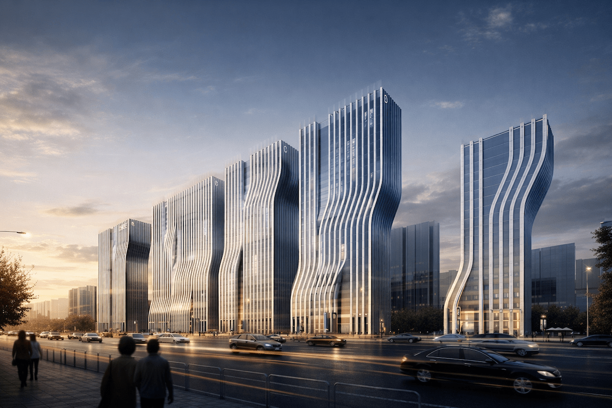 Este concepto se expresa a través de formas arquitectónicas que evocan movimiento y modernidad, creando un nuevo hito en el skyline de la ciudad. Aunque el complejo integra usos mixtos, su función principal es financiera, ofreciendo espacios de primer nivel para oficinas, corporaciones y actividades empresariales globales. South Central se presenta no solo como un centro funcional, sino también como un símbolo de prestigio e identidad, posicionando a Taiyuan como una ciudad emergente lista para competir en el escenario internacional.