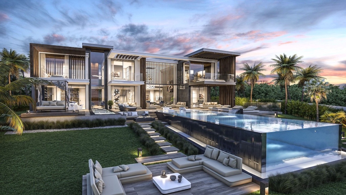 Con un estilo contemporáneo, cuenta con 6 dormitorios distribuidos en 3 niveles, con amplios espacios a doble altura que proporcionan una visión lujosa de la casa.
